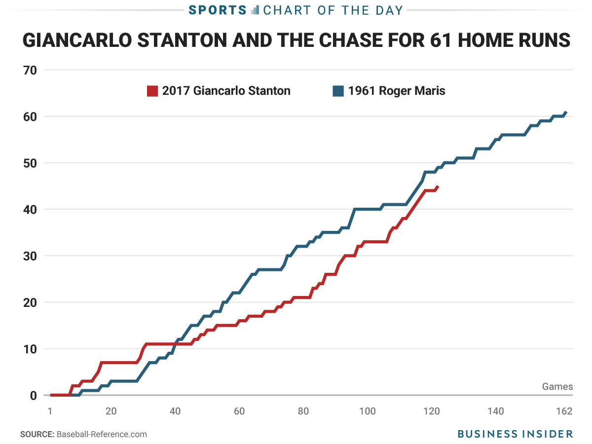 Giancarlo Stanton’s home run pace compared to Roger Maris.Mike Nudelman/Business Insider