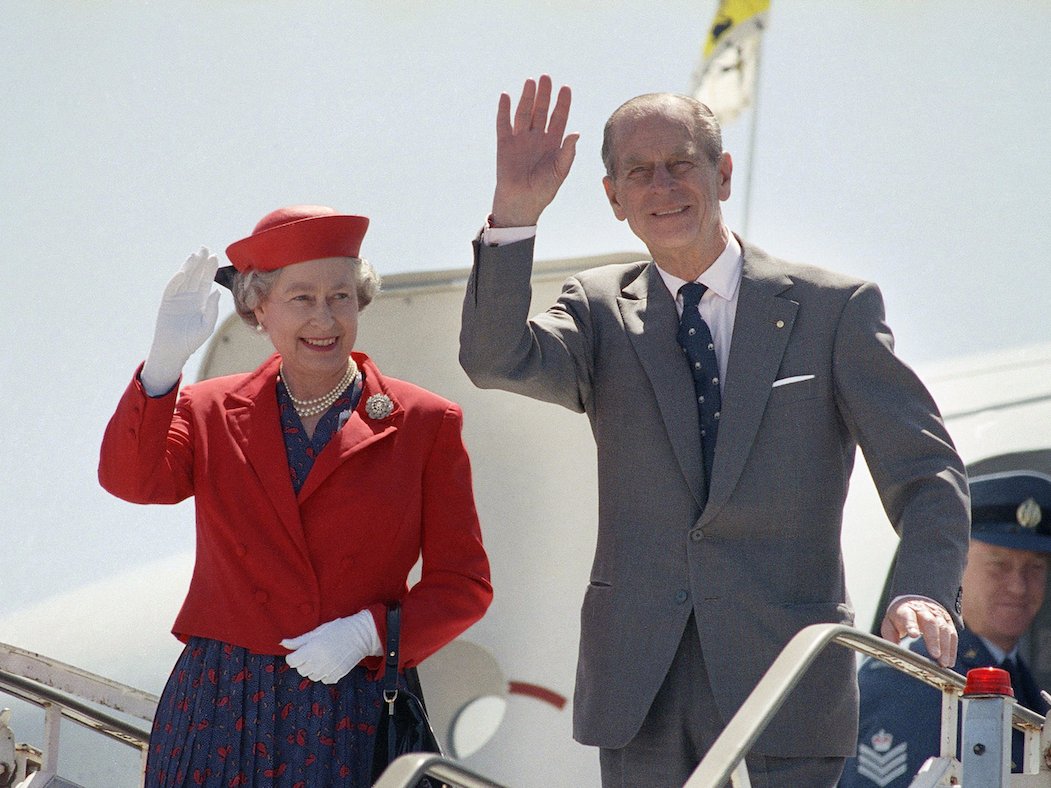 The Queen and the Duke of Edinburgh arrive at Adelaide Airport, Australia in 1992.AP/Jess Widener