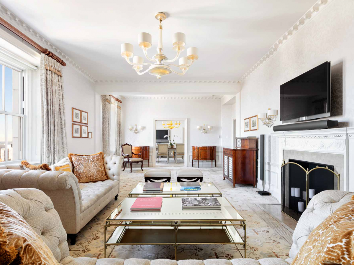 The best part of living in this swanky hotel may be the many luxury services The Pierre offers. Residents are given complete access to the butler service, pet pampering, twice-daily maid service, and the hotel’s chauffeur-driven Jaguar.