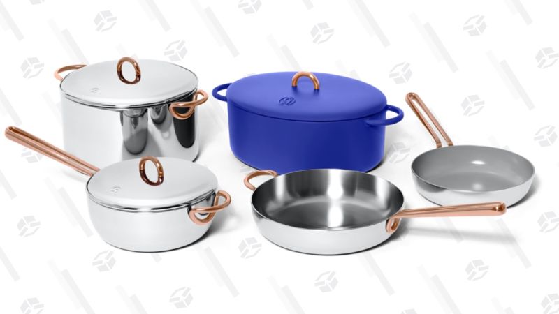 But looks aside, Great Jones checked off all the major performance and usability boxes. The pans are oven safe to 500 degrees, dishwasher safe, induction-friendly, and include laser-etched measurement markers on the inside, which can potentially save you a few dirty measuring cups. Most importantly though, the stockpot, saucepan, and skillet are all constructed from fully clad stainless steel, meaning their fast-heating aluminum cores extend up the sidewalls for even heating throughout. That’s the same type of construction you’d find in more expensive pans from the likes of Cuisinart and All-Clad, even as these are priced decidedly in the mid-range of the market.
