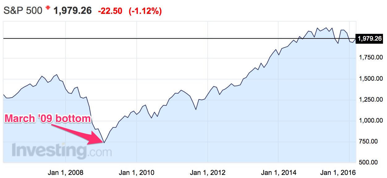 Since bottoming at 666.79 on March 6, 2009, the S&P 500 has shot up 197%. It closed at 1,979.26 on Tuesday.