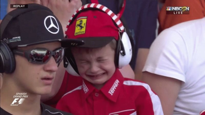 When everybody’s favorite mumbler, Kimi Raikkonen, wrecked out on the first lap of the Spanish Grand Prix Sunday, a young Ferrari fan in the crowd showed more emotion than Raikkonen probably has, total, in his lifetime. The kid looked like someone stole his new puppy. But Raikkonen turned that all around.