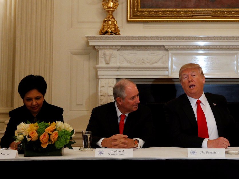 The Strategic and Policy Forum was announced in December 2016 for business leaders to have a direct line to Donald Trump and influence his policies going forward. Critics argued it was a simple way for Trump to display a stable, pro-business face. Steve Schwarzman, the Forum’s leader and CEO of private equity giant Blackstone, said at the time that it was an opportunity to help shape the new president’s policies.