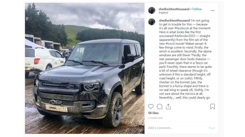 There is a new Land Rover Defender coming. It is apparently going to make its international debut on film in the new James Bond movie, because of course it is. Anything that makes its way onto a movie set is bound to be leaked, because people with cameras tend to end up on movie sets. And they know what to do with photographs.