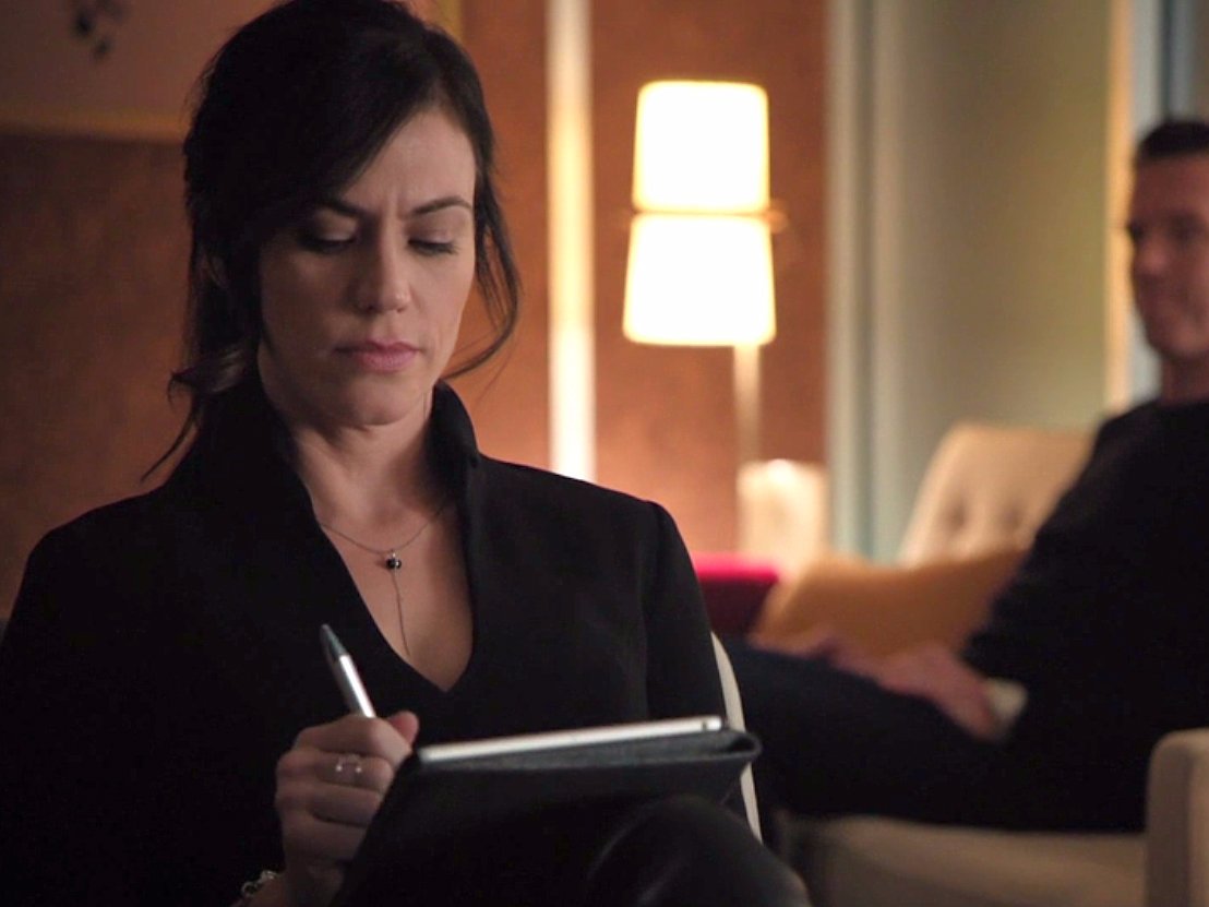 In the show’s pilot episode, the first time we see Rhoades with one of her clients, Mick Danzig. It’s a scene out of a Tony Robbins session, which isn’t a coincidence, since the show’s creators also used him as an inspiration for Rhoades’ character.