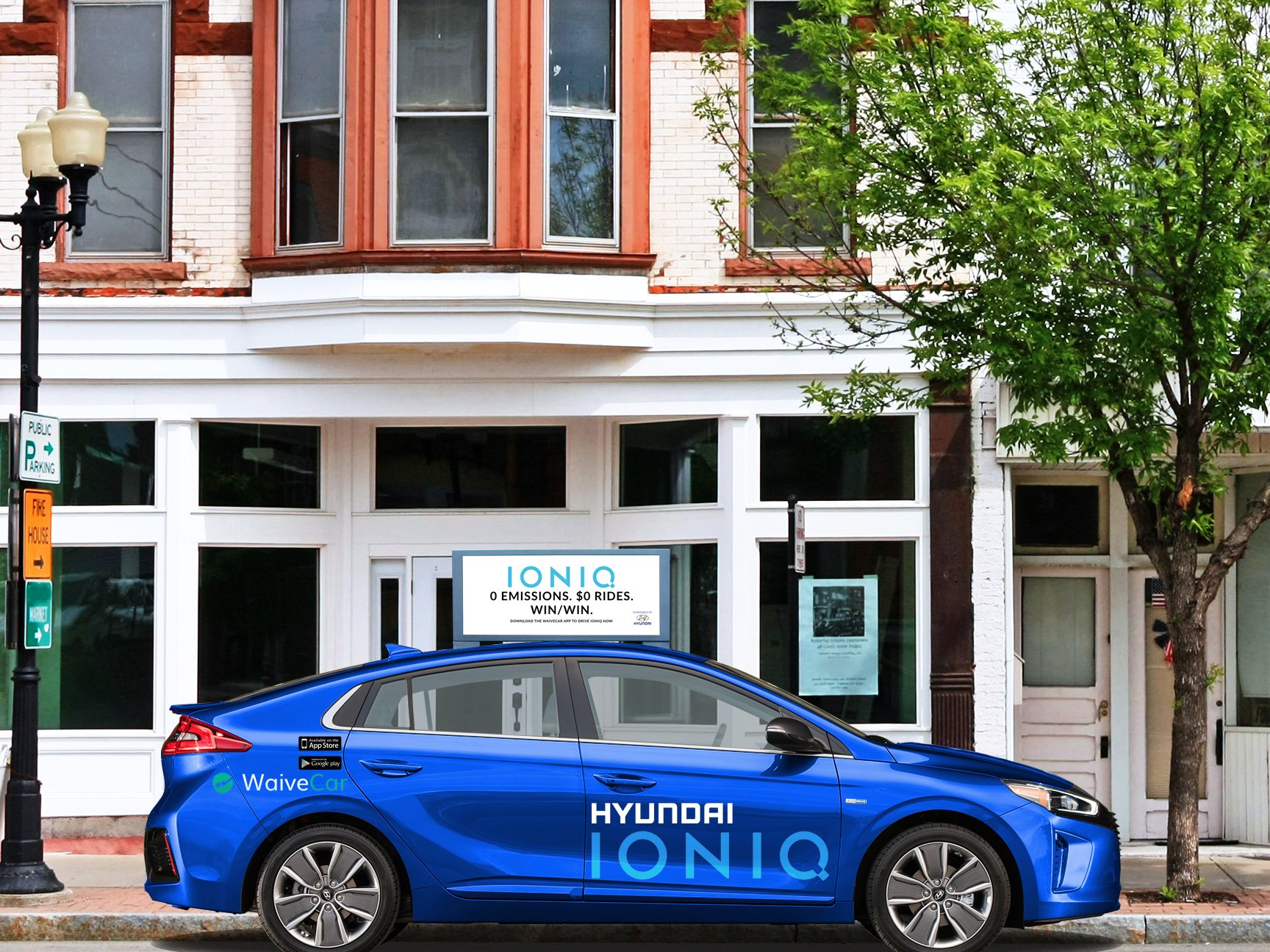 The automaker is partnering with WaiveCar — an all-electric car-sharing platform that operates on advertising revenue — to give customers a chance to drive its new ICONIQ electric vehicle free of charge for the first two hours of driving.
