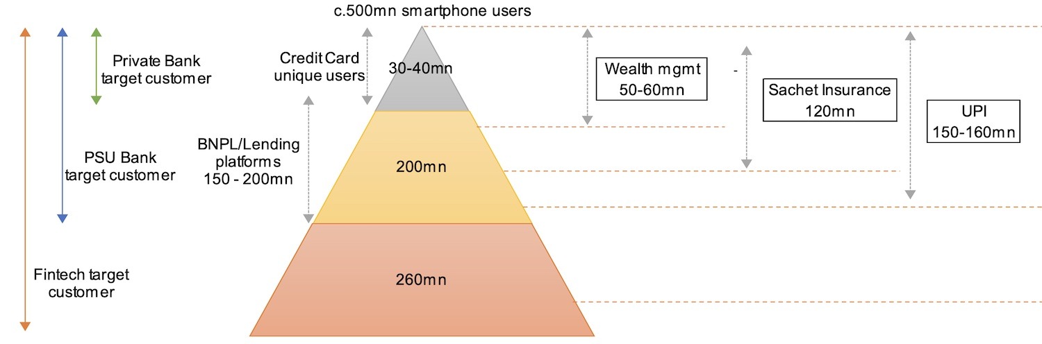 Consumer segmentation and addressable market for fintech firms in India (BofA Research)