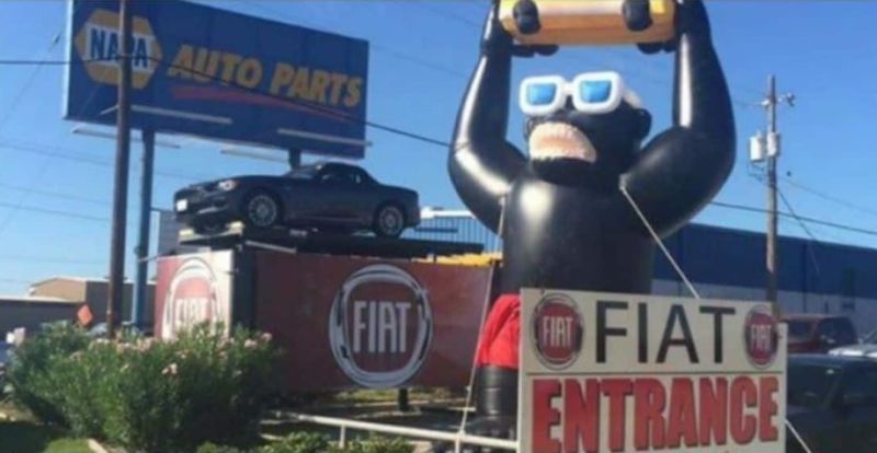 Kong, a large inflatable gorilla, was stolen from a Texas car dealership this weekend. His handlers, Corpus Christi Fiat, are concerned that if he is not returned home he may pose a danger by offering HUGE SAVINGS to those that may not qualify for such discounts.