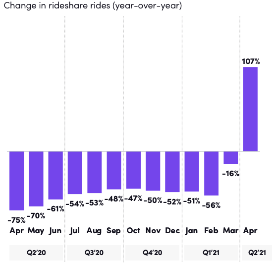 Considering the company’s quarter in aggregate it’s easy to make the bearish and bullish case regarding its performance. On the bearish side of things, Lyft is smaller, and losing even more money than it did in the year-ago period. And the road to recovery for its operations will prove winding as COVID-19 declines to fuck off, even in the face of rising global vaccination levels.