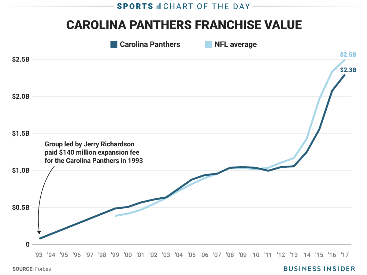 When Richardson does sell the team, he is going to cash-in big time. In the latest franchise valuations by Forbes, the Panthers have an estimated value of $2.3 billion, however, most are speculating that the team will eventually sell for something closer to $2.5 billion.