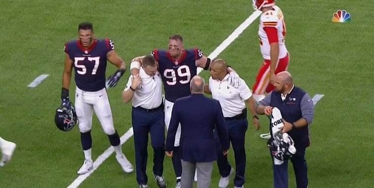 On the same day that Odell Beckham Jr. suffered a devastating leg injury, Houston Texans’ all-world defensive end J.J. Watt also appeared to go down with a serious leg injury.