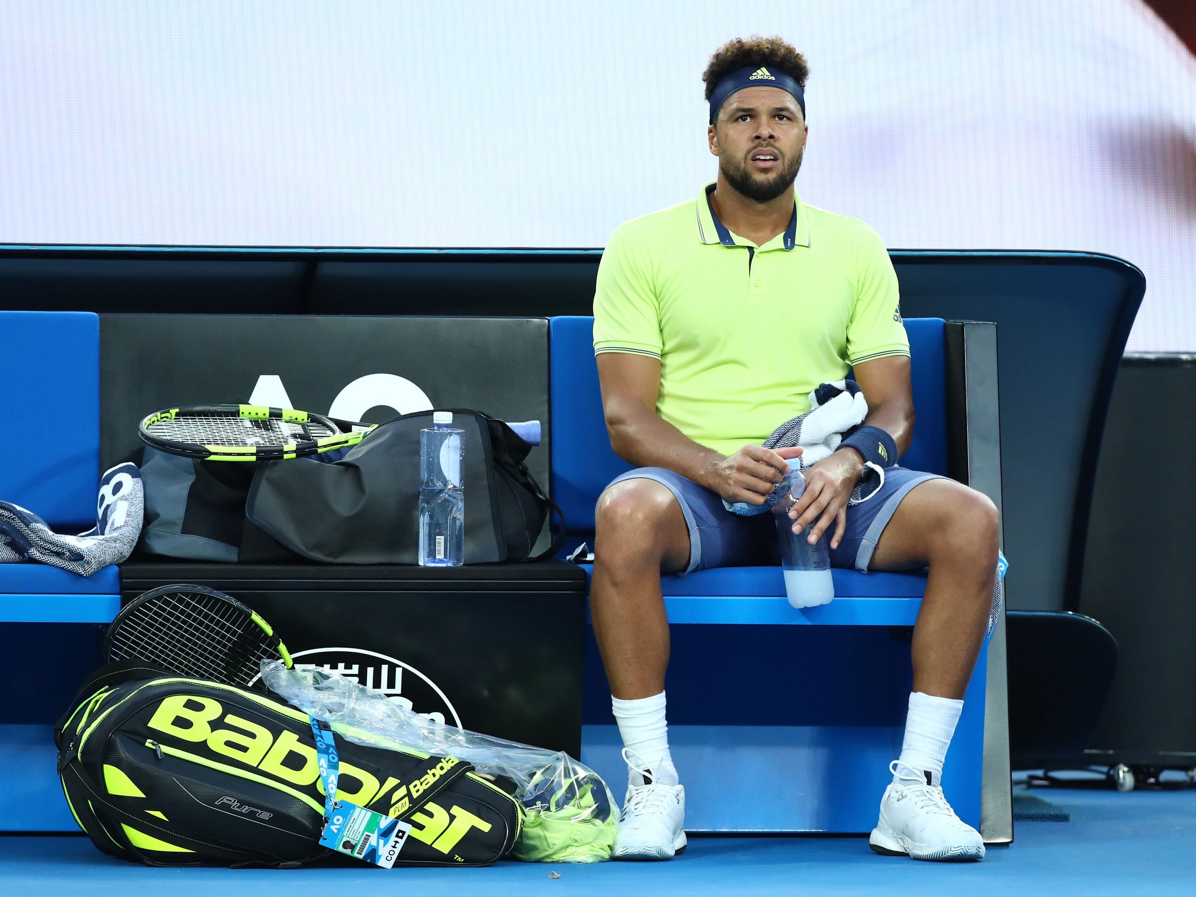 Jo-Wilfried Tsonga reflects on his chair in between sets.Getty Images