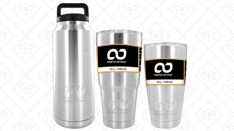 Today on Amazon, Alpha Armur vacuum insulated tumblers are on sale in the Gold Box. The best deal of the bunch is a 36 ounce bottle with a wide mouth screw top for $20. When sealed, it’ll keep ice frozen for about a day, and the big handle makes it easy to carry or attach to a bag.