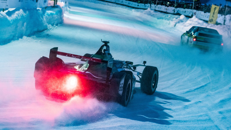 Last year’s Formula E car looks great with about a trillion ice studs in its tires, but the Group B Quattro it’s chasing still looks better suited to this kind of activity. I’d die for the opportunity to boot either of these around the ice circuit at Zell am See for the GP Ice Race.
