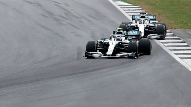 Despite getting away from the start in fabulous fashion and running well ahead of his teammate, Valtteri Bottas failed to win the British Grand Prix. For the first segment of the race, the two Mercedes ran in lock step one behind each other. Bottas, as the leader, was given the option to pit first, and he took it. Lewis, meanwhile, stayed out a handful of laps later to play a different strategy. That paid dividends when Alfa Romeo’s Antonio Giovinazzi spun off and got stuck in the litter, calling out a safety car.