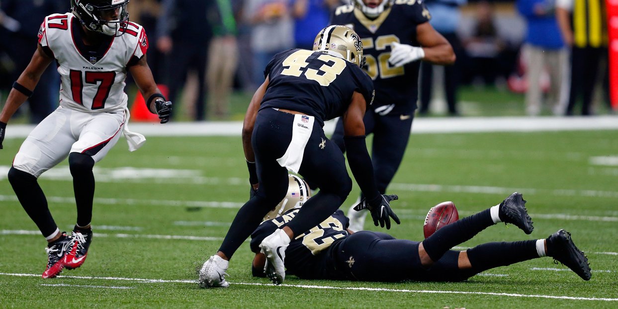 The pick also helped the Saints onto their 23-13 win over the Falcons, which secured New Orleans a playoff spot.