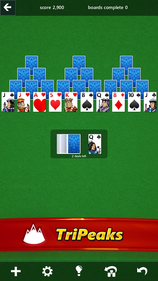 TRIPEAKS Select cards in a sequence, earn combo points, and clear as many boards as you can before you run out of deals!