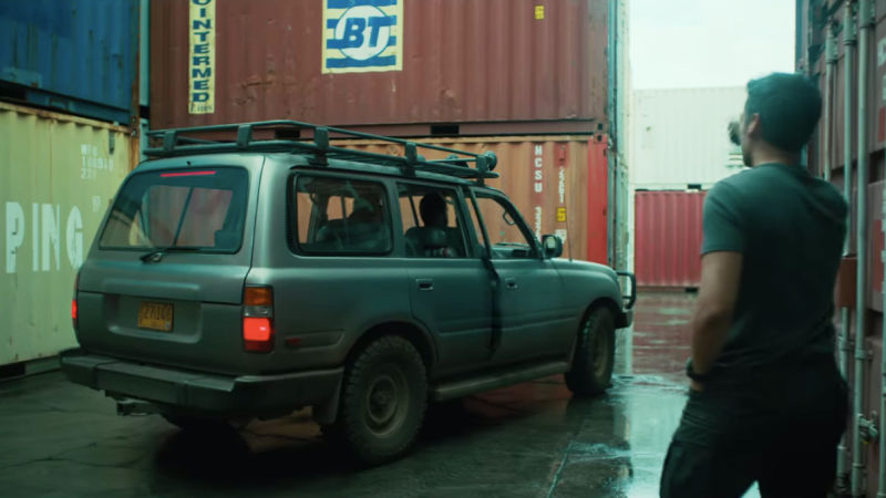 Early on, our heroes are rolling to the jungle in an 80-Series Land Cruiser. It’s debadged, olive green, with a big rack and lights on small but aggressive-looking tires, which is exactly what I would imagine actual professional mercenaries driving.