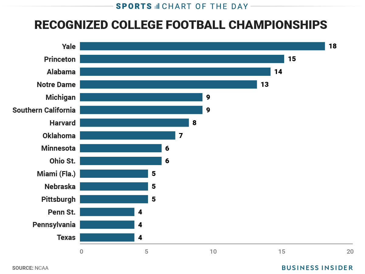 The Ivy League no longer dominates the college football landscape, but when it comes to most championships in NCAA Division I-A/FBS history, a pair of schools still top the list.