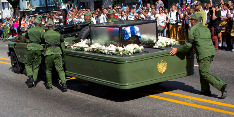 The Wall Street Journalreports Cuba’s sendoff for Castro was an extravagant one. After a few days of mourning, the revolutionary’s ashes were placed in a box, set on a trailer, and towed approximately 500 miles from Havana’s Revolutionary Square eastward on a three day journey tracing the reverse path Castro’s guerrillas took to overthrew the Batista regime nearly 60 years prior.
