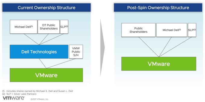 Here’s how VMware described it to shareholders in a presentation this week. The graphic shows that under the new agreement, VMware is no longer a subsidiary of Dell and will now be an independent company.