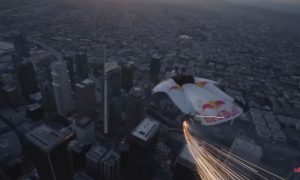 Screenshot: Red Bull Yesterday on Twitter a few people noticed a stream of light above the evening Los Angeles skyline. Some called...
