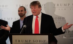 Donald Trump speaks to reporters before cutting a ribbon at Trump Soho in April 2010.Jessica Rinaldi/Reuters The Trump SoHo hotel and condo...