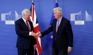 Brexit secretary David Davis greets the EU’s chief negotiator Michael BarnierReuters Sterling climbs after reports that UK and EU have settled on...