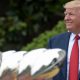 President Donald Trump arrives to speak on the South Lawn of the White House in Washington, Wednesday, April 19, 2017, during a...