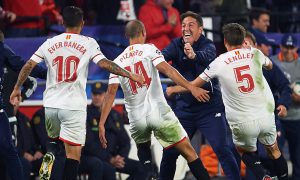 Sevilla players Banega, Pizarro, and Lenglet, mob their manager Eduardo Berizzo after securing unlikely comeback.Getty Images Sevilla looked down and out as...
