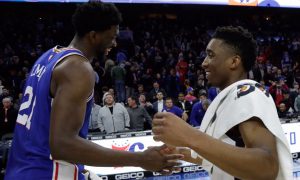 AP Photo/Matt Slocum Joel Embiid trolled Jazz guard Donovan Mitchell into a cheap technical foul on Monday night. After the game, Embiid...