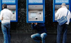 A man repairs a cash machine outside a bank in London, November 25, 2009.REUTERS/Luke MacGregor LONDON — A Brexit-fuelled economic slowdown is...