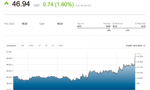 Markets Insider West Texas Intermediate crude oil traded up 1.6% at $46.94 a barrel after weekly US Energy Information Administration inventory data...