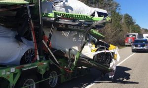 Photos: Alabama Law Enforcement Agency A truckload of brand new Corvettes still in their packaging wrap was involved in a minor rub...