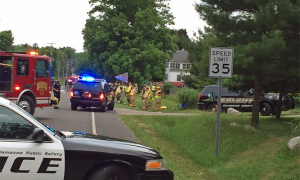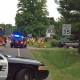 Phil Dawson/WZZMA view of police and fire officials responding to a collision that killed several bicyclists near Kalamazoo, Michigan. At least five...