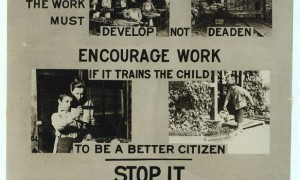 Lewis Hine/Library of CongressAn exhibit panel. Most jobs in the US in the early 20th century were done under grueling conditions. Features...