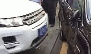 GIF In China, a beautiful dark purple Jaguar XJ blocked a Range Rover Evoque from an exit, leaving the SUV’s driver with...