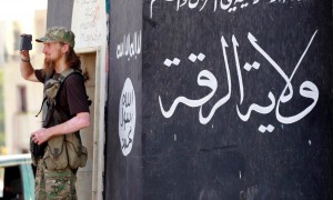 REUTERS/StringerA militant Islamist fighter uses a mobile to film his fellow fighters taking part in a military parade along the streets of...