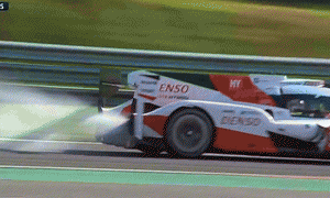 The No. 5 Toyota laid down a huge smokescreen when its engine blew. GIF via YouTube. No car in the top World...