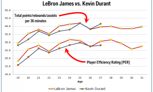 More Charts LeBron James and Kevin Durant have had markedly different careers in the postseason, but if we compare their regular-season careers...