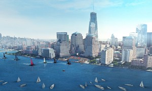 America’s Cup Event Authority A rendering of the race and spectator headquarters along southwest tip of Manhattan New York will host the...