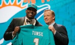 Jon Durr/Getty The Miami Dolphins held an introductory press conference for their first-round draft pick, Laremy Tunsil, on Friday — without Laremy...