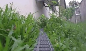 Seeing the perspective of a toy train is way, way more fun than it should be. About 160 feet of Lego train...