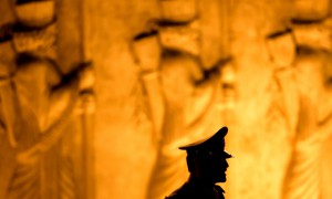 Reuters/Morteza Nikoubazl A member of the Iranian Army waits for the farewell ceremony for Russian President Vladimir Putin in Tehran October 16,...