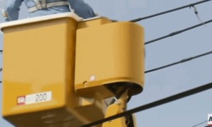 In a scene eerily reminiscent of Rise of the Planet of the Apes, an escaped chimpanzee sought refuge on the power lines...