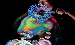 Jason Lee/ReutersCanadian bubble artist Fan Yang performs during “The Gazillion Bubble Show” in Beijing. There’s a huge bubble at the bottom of...