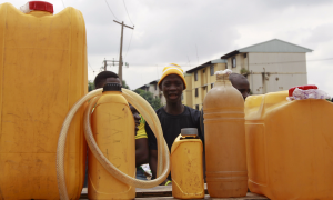 Afolabi Sotunde/Reuters A man sits behind containers containing petroleum near the Area 10 shopping center in Abuja, Nigeria, 2015. Nigeria is currently...