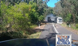 Carlisle River, Victoria, Australia: A commercial truck driver stopped to render assistance to a woman who’d damaged her car running over what...