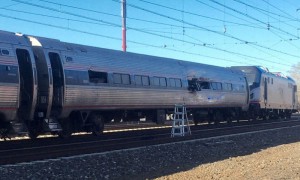 Photo credit AP An Amtrak train derailed Sunday morning after it struck a backhoe on the tracks near Philadelphia, killing at least...