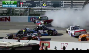 Image via Fox Sports screengrab It seemed as if more wrecks than actual racing occurred in Saturday’s NASCAR Camping World Truck Series...